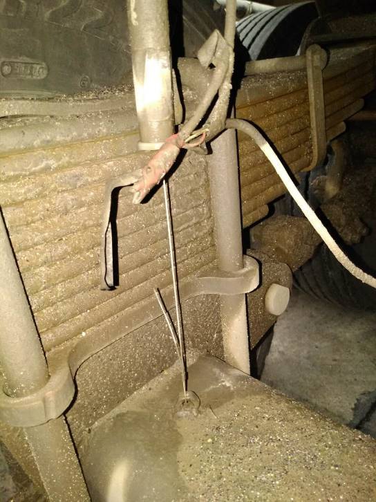 3.下圖這個的安裝位置距離下端距離太近,車輛裝滿貨遇到顛簸的路可能會碰到傳感器。空車時傳感器下端距離安裝底面要有20cm以上的距離。